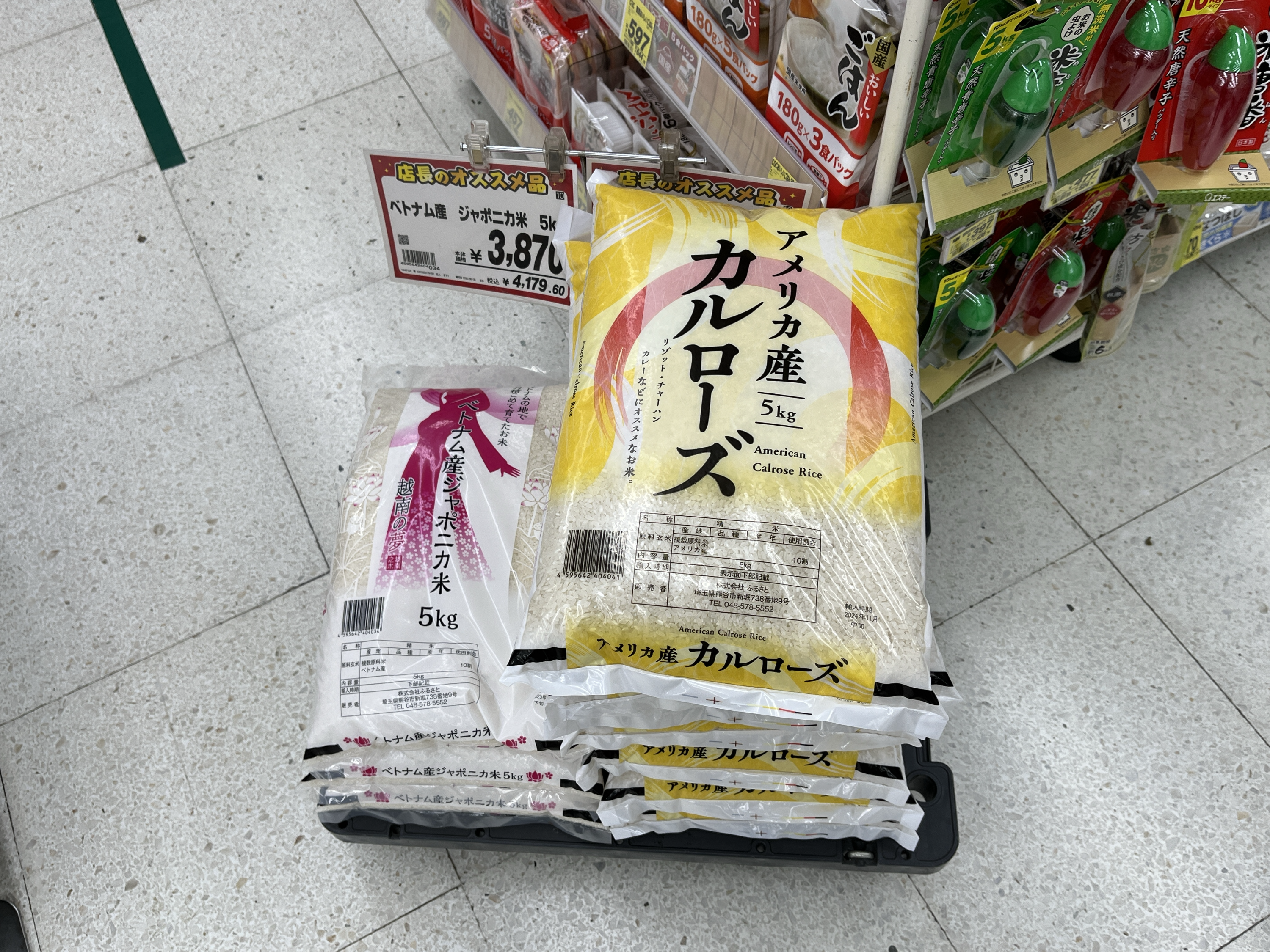 왼) 베트남산 자포니카 품종이 5kg 4,179엔